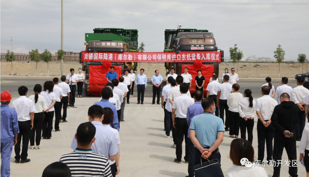 2020年6月11日,6臺CP690自走式大型采棉機“保稅運輸”順利抵達南疆國際陸港(庫爾勒)有限公司公用型保稅倉庫,實現(xiàn)了南疆國際陸港(庫爾勒)有限公司與天津港海陸兩港聯(lián)動。