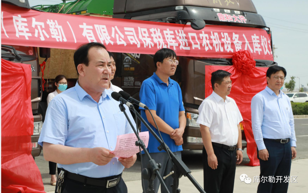 巴州黨委常委庫爾班江·胡土勒克在現(xiàn)場參加入庫儀式并講話,開發(fā)區(qū)黨工委副書記、管委會主任吉洪會參加儀式。